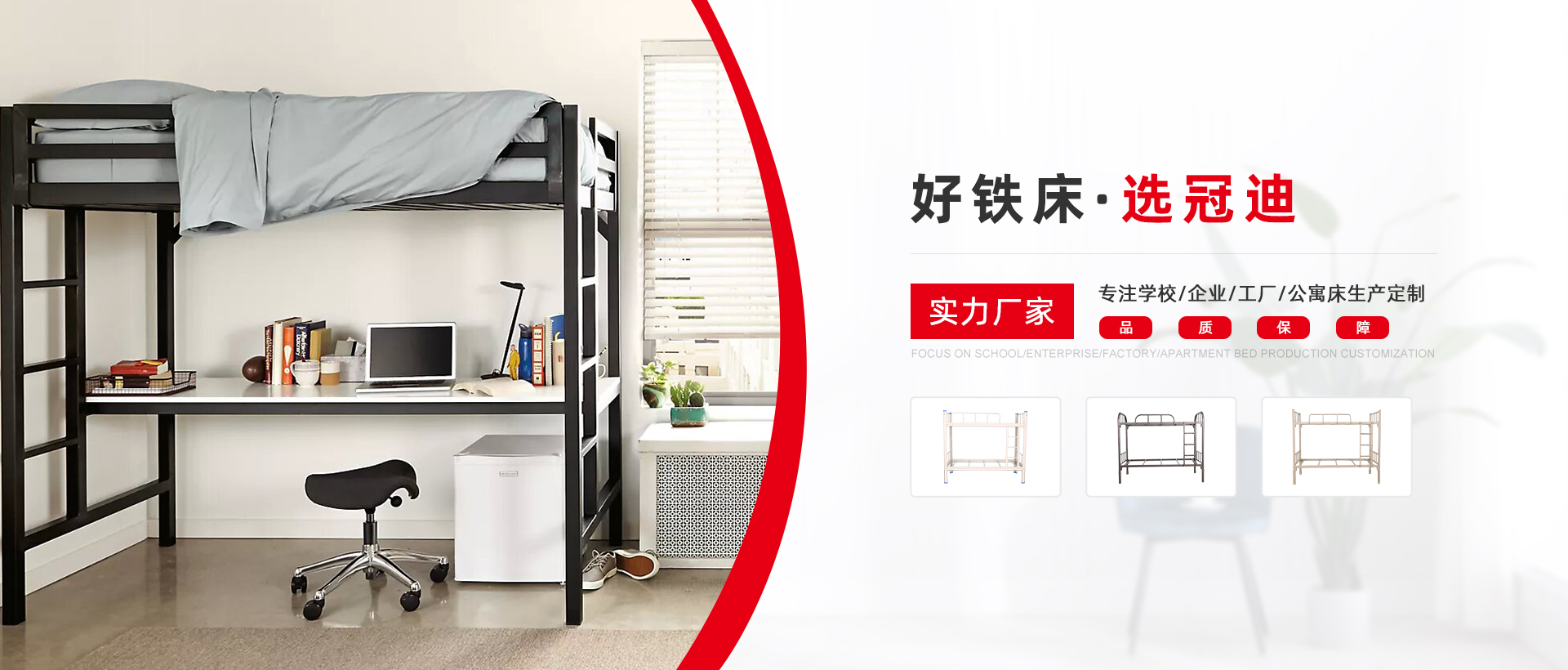 冠迪五金-看得見的鐵床生產實力 現代化生產制造企業,為超過1000企業單位提供公寓宿舍鐵床鐵柜整體解決方案
